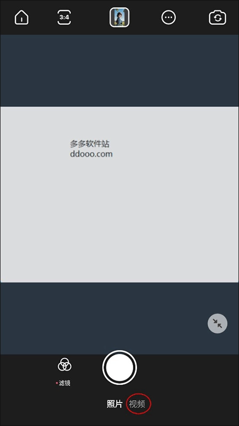 2、向左滑动页面,或者点击底部的“视频”按钮,就能进入视频拍摄界面。