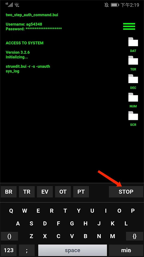 3、若需要暂停代码的运行,点击界面上的【STOP】按钮就能完成暂停操作。