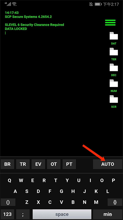 2、进入代码编辑界面后,在键盘上选择任意一个字母,接着点击【AUTO】按钮,系统就会自动启动并滚动代码。