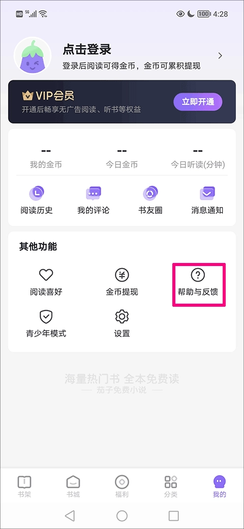 2、随后在个人中心页面里,点击【帮助与反馈】这一选项。