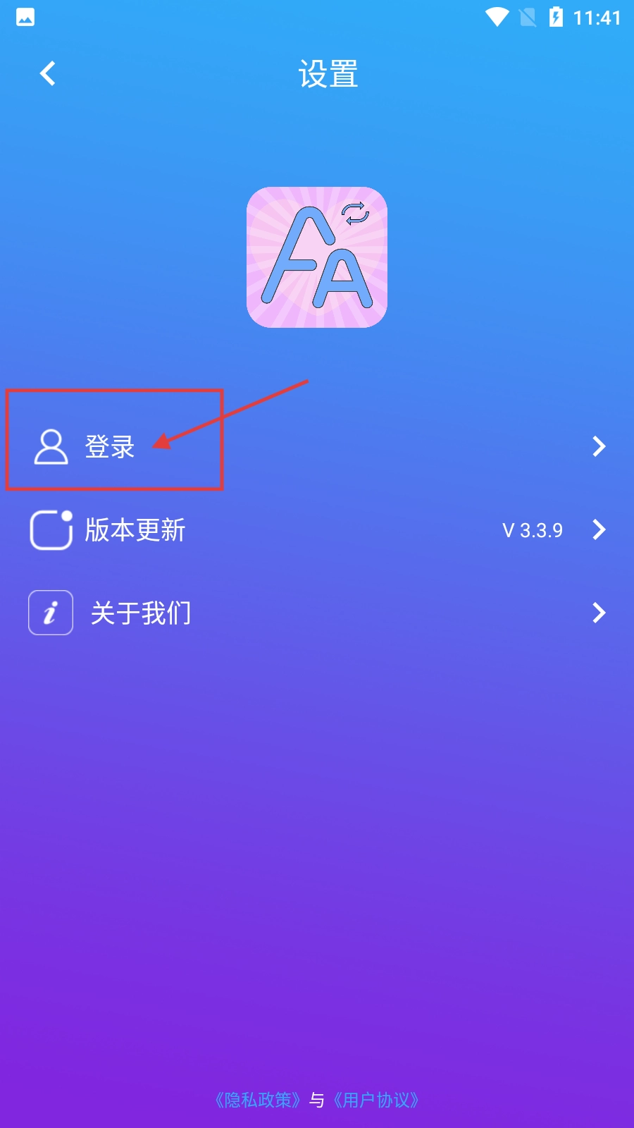 2、进入设置界面后,点击【登录】选项,即可跳转至登录界面。