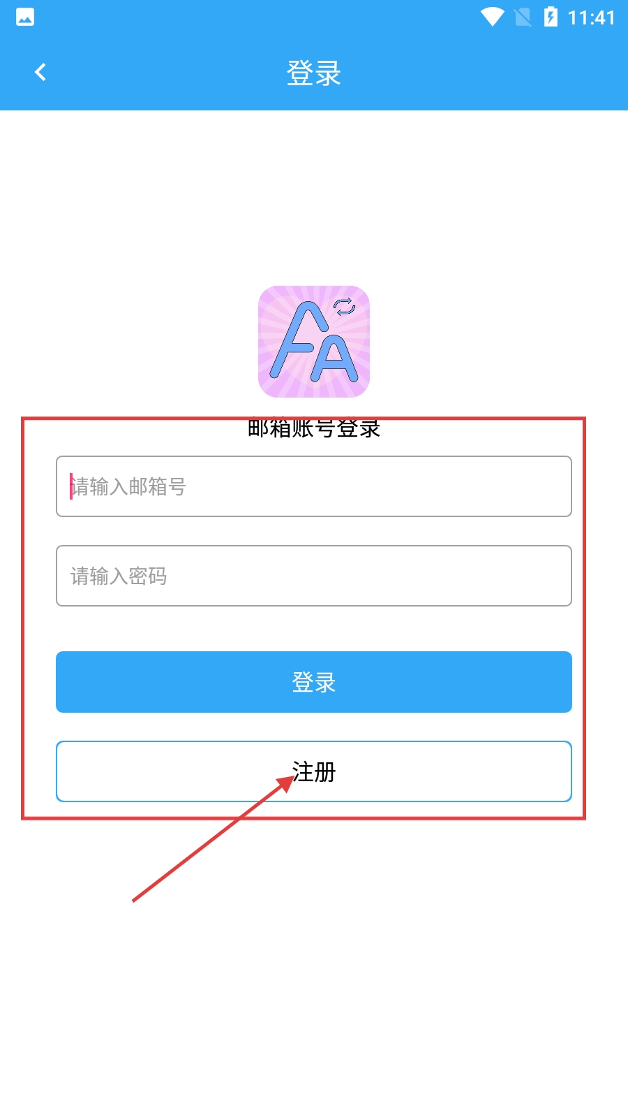 3、在登录界面,点击【注册】按钮,即可进入账号注册界面。