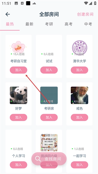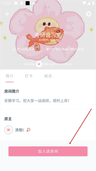 4、点击底部的【加入该房间】按钮,就能完成加入这个学习房间的操作。