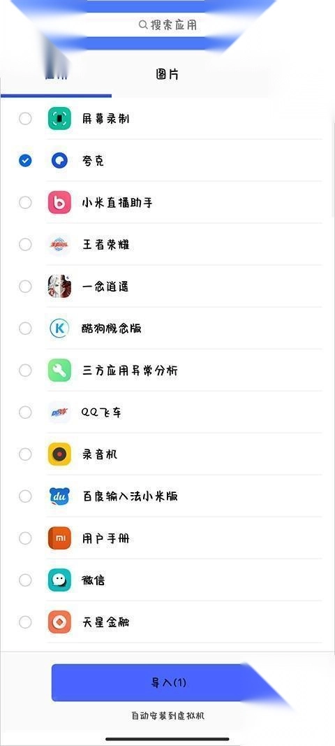 5、进入选择应用的页面后,找到并勾选想要导入的应用,最后点击“导入”按钮就可以了。