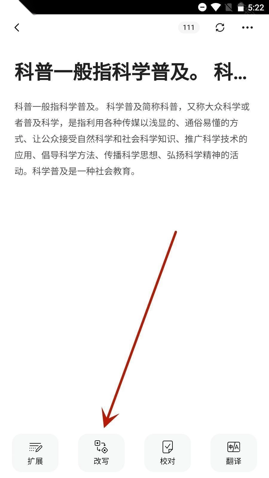3、复制、粘贴你要改写的句子,然后点击最下方的改写功能