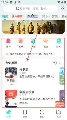 1、打开软件后,首先在首页看看【排行】【推荐】等板块,如果发现感兴趣的书籍,比如【候冬症】,就能够点击进入查看。