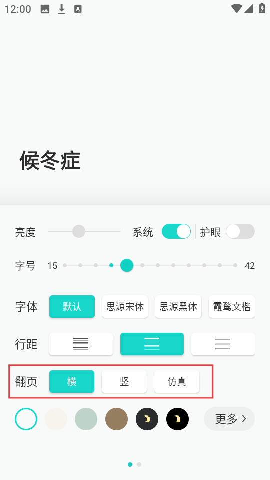 4、在【设置】界面,您能够依据自身喜好,挑选【横】【竖】或者【仿真】翻页模式,使阅读体验更为舒适。