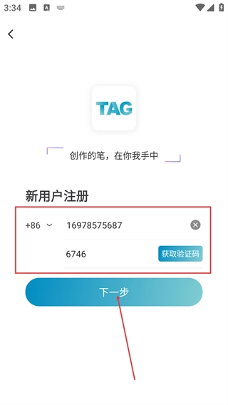 3、在新用户注册页面,选择地区为【+86】,填写手机号并获取验证码,输入验证码后点击【下一步】按钮,以继续完成注册流程。
