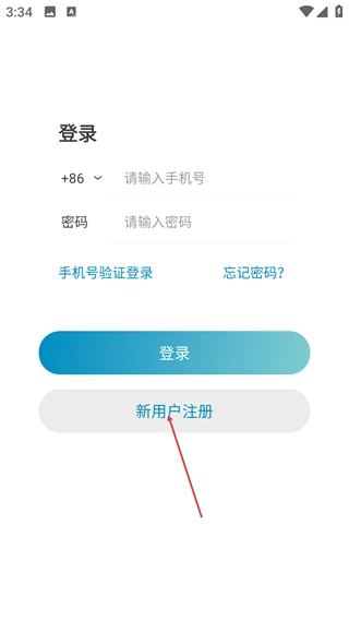 2、在登录页,已有账号可输入手机号和密码登录;若无账号,点击【新用户注册】按钮进入注册流程。