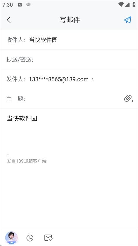 139邮箱App是中国移动打造的多功能邮箱管理工具,集邮箱、云盘、智能助手与移动运营商服务于一身,支持手机、PC、短信多端邮件收发,能全方位满足现代办公及个人数据管理的需求。它创新采用“手机号就是邮箱号”的设计,有效降低了使用门槛,同时配备邮件+短信双重提醒功能,保障用户不会遗漏任何重要信息。作为智能办公应用,139邮箱具备文件云备份、微信资料存储、语音转写、资料共享群等实用功能,还接入了DeepSeek 671B AI模型,可提供智能写作、文档润色、智能问答等辅助服务,助力用户提高办公效率;此外,它还整合了移动话费账单服务,实现通信与财务管理的融合,打造出真正的“智慧信息管理中枢”。
