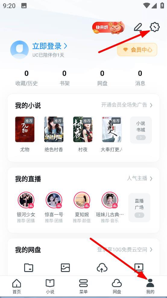 1、在本站通过UC浏览器进行安装,安装完成打开后,点击右下角【我的】,再点击右上角【设置】即可进入。