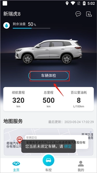 1、运行智云互联进入首页,点击“车辆体检”。