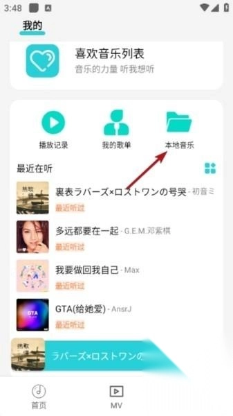 3、想要找到已经的音乐就可以在本地音乐功能中看到。
