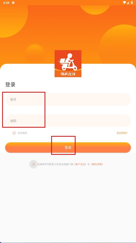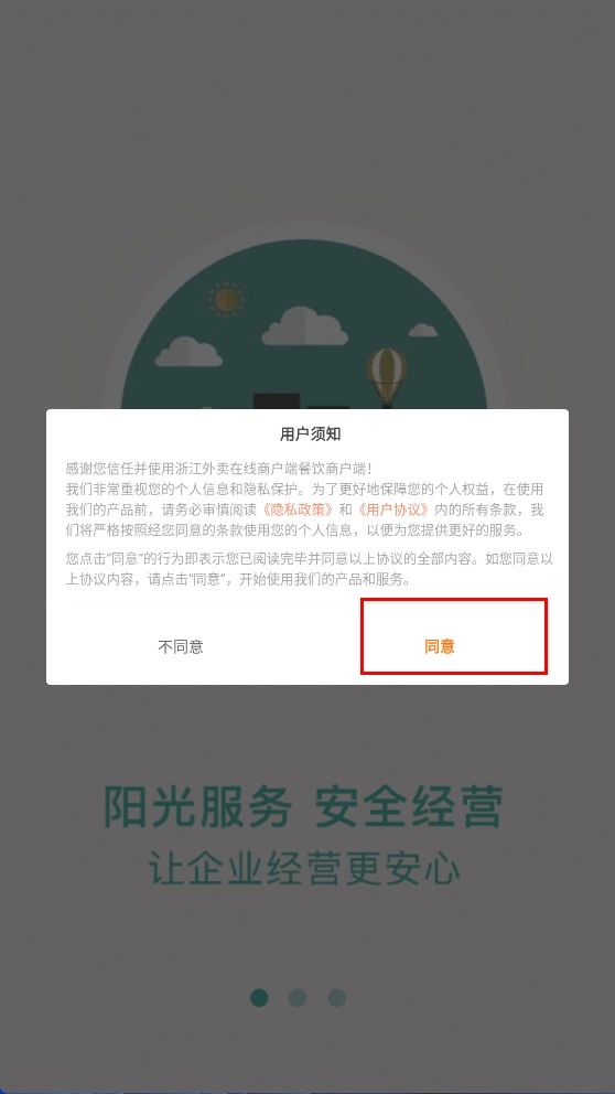 点击【同意】按钮,即表示您确认并同意《隐私政策》与《用户协议》,随后将进入浙江外卖在线商户端。