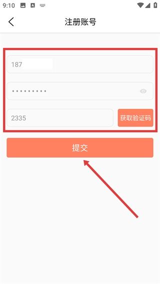 注册账号的步骤是:先填写手机号,接着设置密码,然后获取并填写验证码,最后点击“提交”按钮,这样就完成注册了。