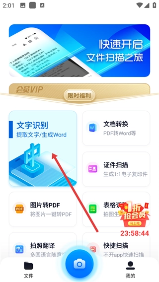 打开软件后,找到【文字识别-提取文字/生成Word】的功能模块,点击该模块进入文字识别的操作界面。