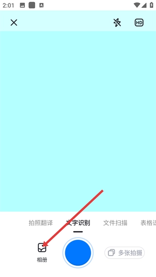 在文字识别界面,点击左下角的【相册】按钮,即可进入图片选择页面。