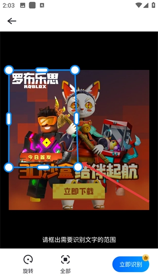 框选出需要识别文字的区域,点击右下角的【立即识别】按钮,即可启动文字识别流程。