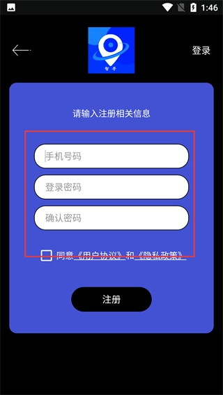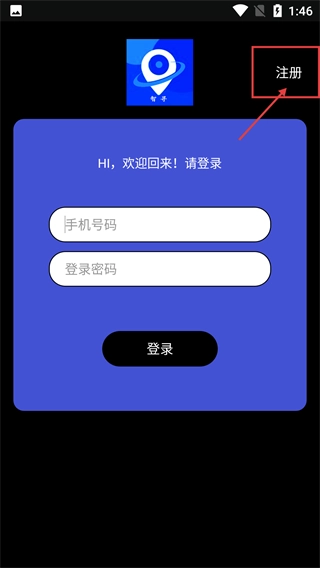 在登录页面,如果还没有注册账号,可以点击右上角的【注册】按钮,就能跳转到注册界面,在这个页面需要填写【手机号码】和【登录密码】。