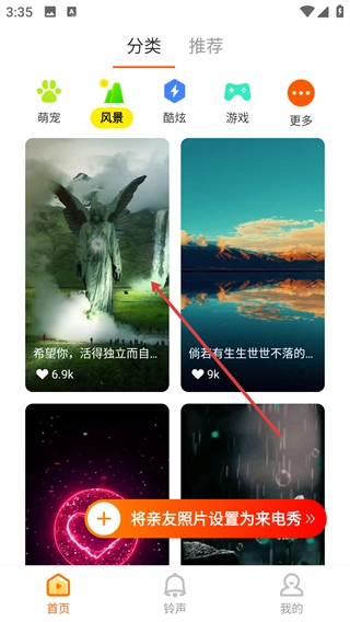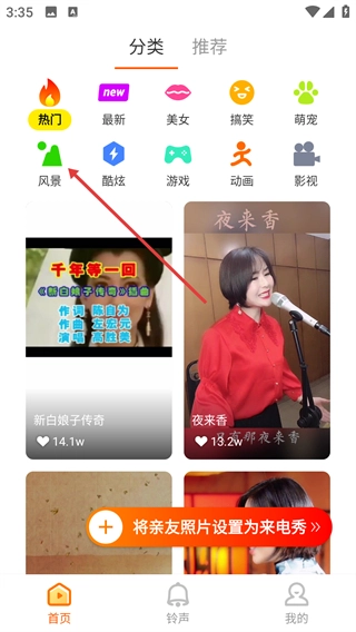 点击【风景】分类选项,进入风景类内容页面。