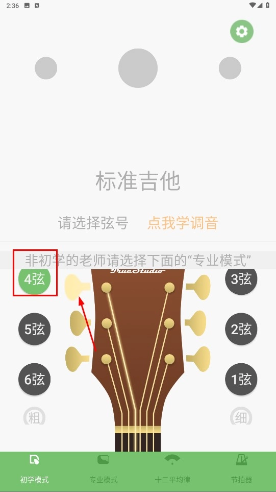 选择如【4弦-弦号】,对吉他4弦进行调音操作。