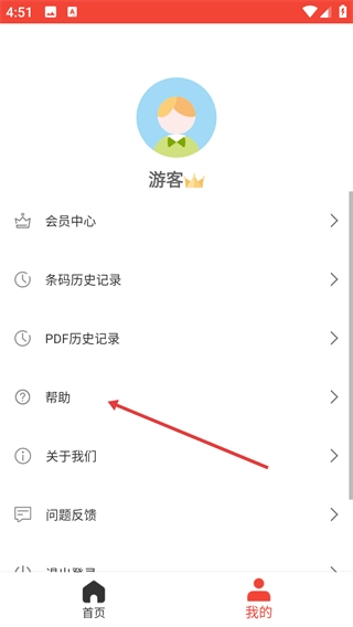 在个人中心界面点击【帮助】选项,进入帮助页面。