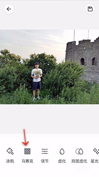 确认完成后,就能给照片更换背景了,点击右上角的图标,就能保存下来。