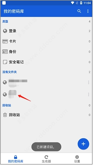 4、保存操作完成后,就能在软件的密码库列表里找到这个条目了。