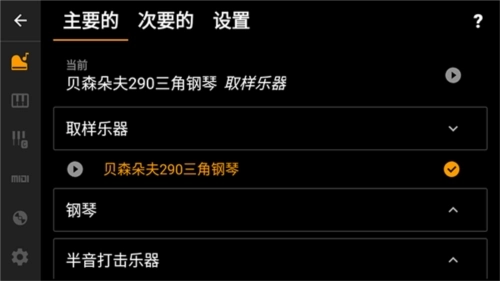 4、右上角设置可更改钢琴的乐器和音色