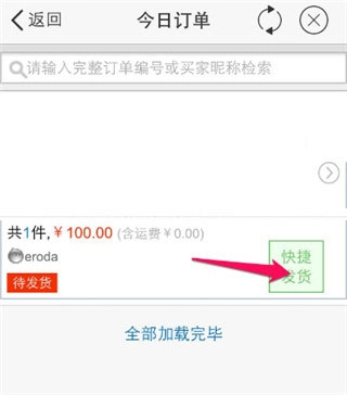 3.进入后选择需要发放的订单,然后点击快捷发货