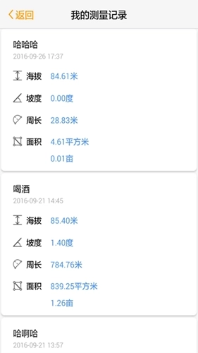 3.围绕土地绕行一周,就能实时获取其面积、周长、海拔高度及坡度信息。