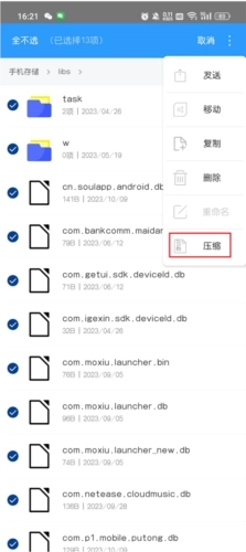 3、点击右上角全选你想压缩的文件;
