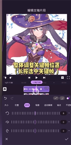 7、接着对所有关键帧的位置开展统一的调节操作,只需依据关键帧来调整时长就行