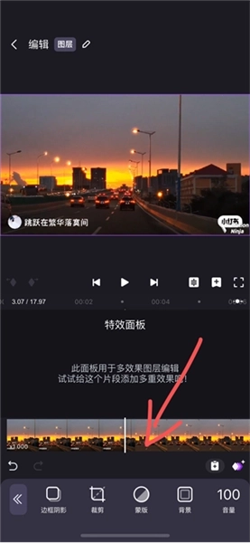 3、将准备好的带水印视频导入动效忍者软件,接着点击编辑并选择蒙版按钮。