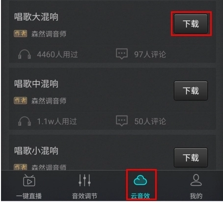 1、在云音效页面中选择要的云音效;