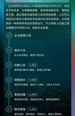 【助眠冥想课程】:专业冥想课程引导下放松身心,提高睡眠质量。