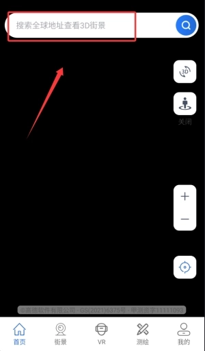 2、输入具体地址或坐标,即可查看该位置的立体街景及其周边环境。