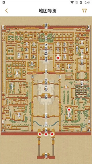 4、点开导航选项栏,能快速查看故宫地图,接着马上点击各宫殿位置来查看相关信息。