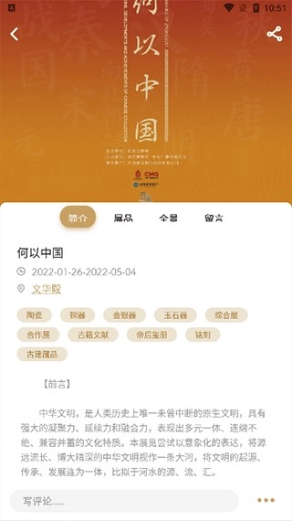 1、选择一个专题进入查看信息,逐个浏览里面的展品