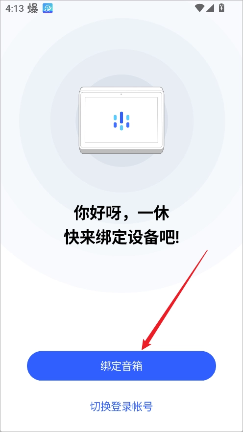 3、一旦设备成功联网,就会自动呈现绑定提示与二维码。这时,打开手机上的腾讯叮当App并登录账号,接着点击页面中的【绑定音箱】。
