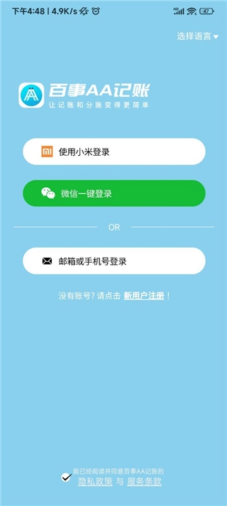 安装百事AA记账,并且打开软件;