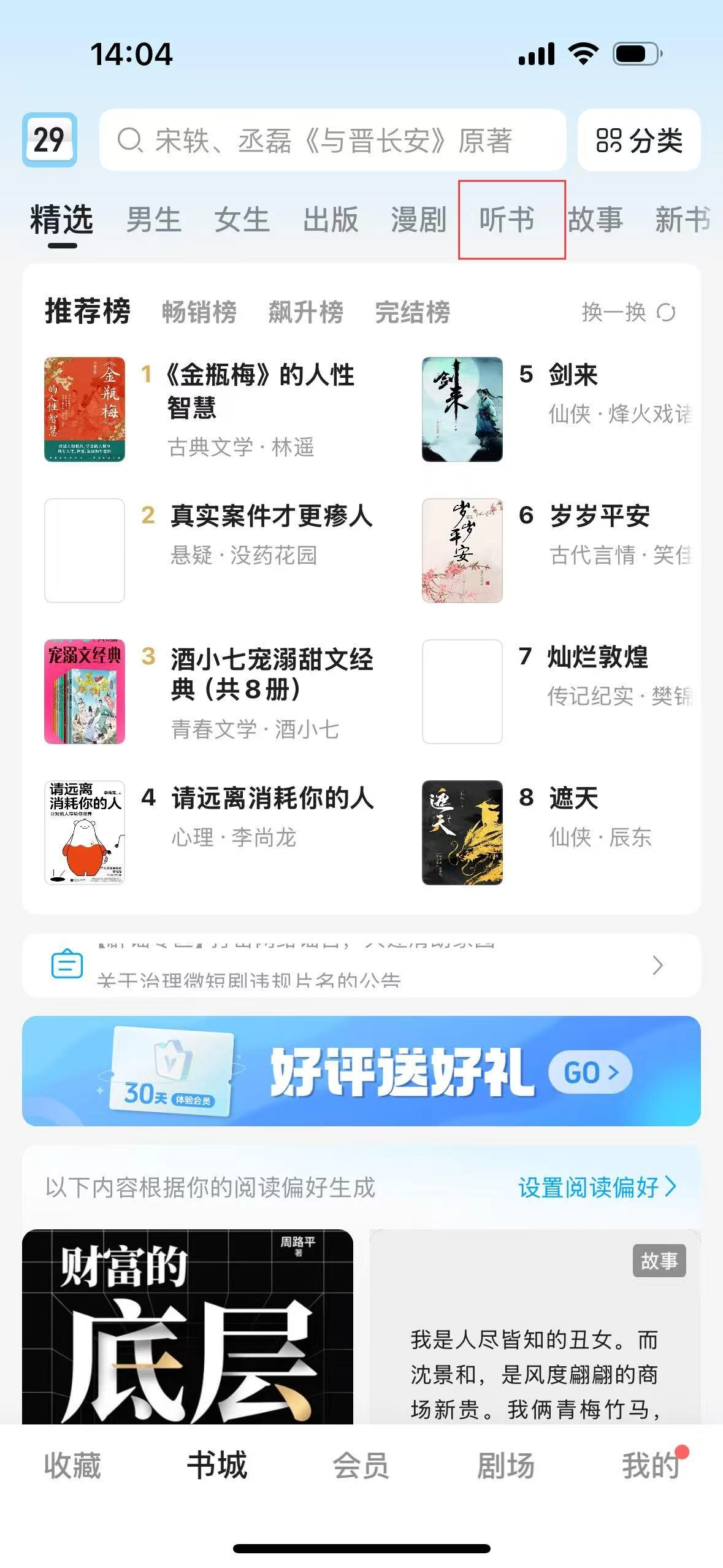 打开软件后,可在影视原著专区查找热门剧集的原著作品;也能按照出版精品、原创小说的分类来筛选题材;还可以通过畅销热书专区挑选高人气的作品。