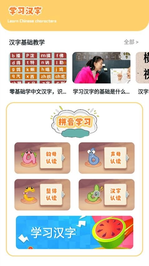该软件在汉字知识方面覆盖全面,包含常用字、部首、成语等丰富内容。