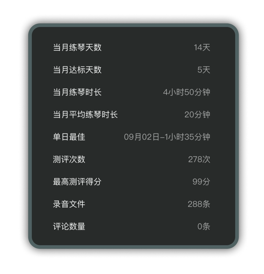 通过可视化的方式,能直观展现每次练琴的投入与成长轨迹,让学习过程更具成就感,从而激发持续练习的热情。