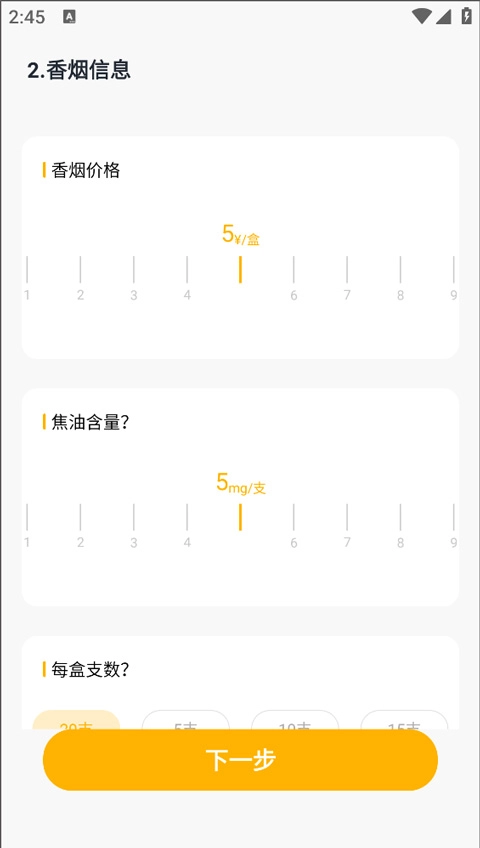 接下来,用户需要提供自己日常所吸香烟的相关信息,像每包的定价、烟油的含量、单包的根数等具体内容。