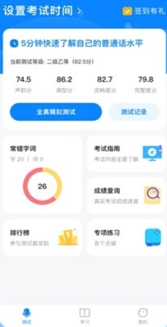 在本站安装普通话考试通应用,启动软件后即可进入其首页。