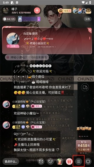 接下来进入直播页面,在右下角能看到好几个不同的图标,我们要点击的是那个【三横图标】。