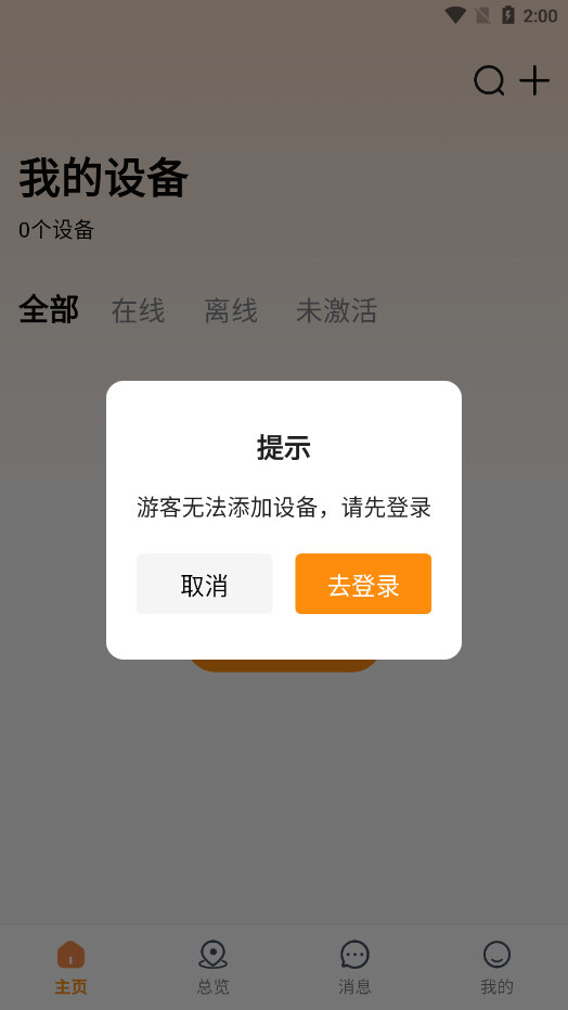 提示【游客无法添加设备,请登录】,请跟随引导完成登录操作。