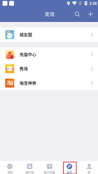 点击“发现”可以查看同城发布的动态;