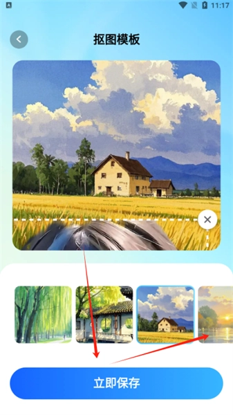 智能抠图功能:先选定抠图模板,再挑选匹配的背景,最后一键完成替换,即可让人物与场景自然融合。